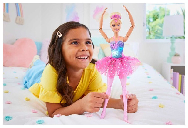 Δείτε την Barbie® να λάμπει με φωτάκια καθώς 'χορεύει'! Αυτές οι όμορφες μπαλαρίνες έχουν φωτάκια που προσθέτουν μαγευτική πινελιά στο παιχνίδι. Τα ευλύγιστα σώματά τους και τα αστραφτερά ρούχα τους προσθέτουν ακόμα περισσότερη διασκέδαση. Αποτελούν ένα τέλειο δώρο για τα παιδιά που αγαπούν τα παραμύθια! Κάθε κούκλα πωλείται ξεχωριστά, ανάλογα με τη διαθεσιμότητα. Στο μπαλέτο, όλα είναι πιο μαγικά!
