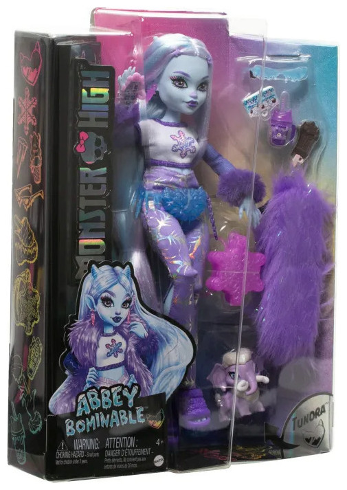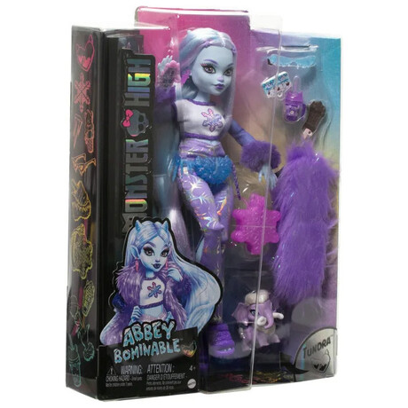 Το Monster High παρουσιάζει την Άμπι, την Κόρη του γιέτι! Αυτό το χαρισματικό και φιλικό monster κατάγεται από τις παγωμένες κορυφές των Ιμαλαΐων και η δύναμή της είναι να ελέγχει τον πάγο και το χιόνι. Η Άμπι έχει πολλά μαγευτικά αξεσουάρ και συνοδεύεται από την Τούνδρα , το μικρό μαμούθ της! Τα παιδιά ηλικίας 4 ετών και άνω θα λατρέψουν τις κούκλες της συλλογής Monster High! Ευλύγιστη κούκλα.