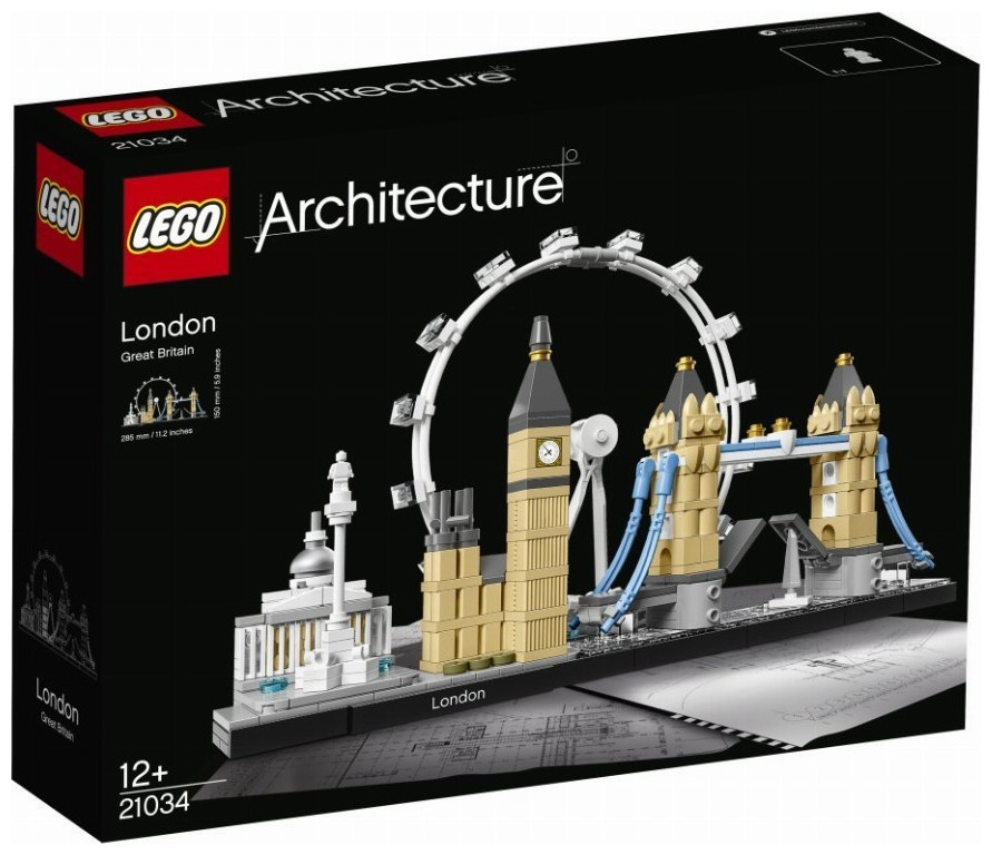 LEGO Architecture Λονδίνο (21034).Αποτύπωσε την αρχιτεκτονική ταυτότητα του Λονδίνου με αυτό το εξαιρετικό σετ που φέρνει κοντά την κλασική Εθνική Πινακοθήκη, τη Στήλη του Nelson, τον τροχό London Eye, το Μπιγκ Μπεν (Πύργος της Ελισάβετ) και τη Γέφυρα του Λονδίνου. Κάθε μεμονωμένη δομή LEGO® παρέχει μια μοναδική και άκρως ικανοποιητική κατασκευαστική εμπειρία, με αυθεντικά χρώματα και απεικόνιση υπό σωστή κλίμακα. O ποταμός Τάμεσης του Λονδίνου αναπαρίσταται στη βάση με τα πλακάκια, προσδίδοντας έτσι μια έξτρα διάσταση και αίσθηση αυθεντικότητας σε αυτό το υπέροχο μοντέλο που εστιάζει στην απίστευτη αρχιτεκτονική πολυμορφία μίας από τις πιο δυναμικές πόλεις του κόσμου.