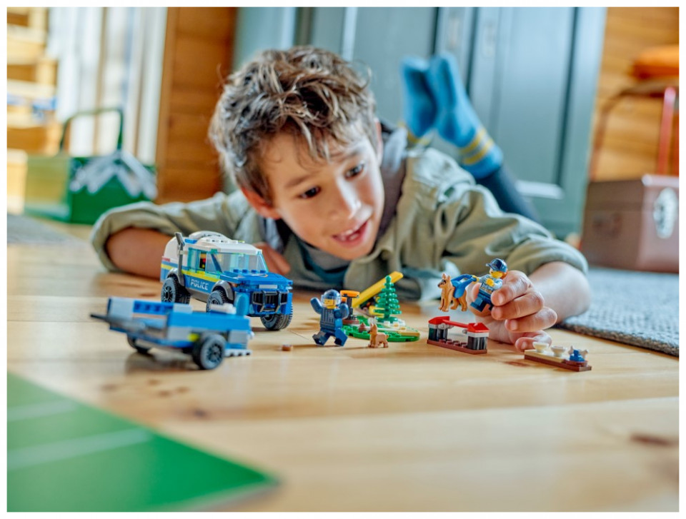 - Police dog training playset – The LEGO® City Mobile Police Dog Training (60369) set is packed with inspiration for imaginative canine-themed play