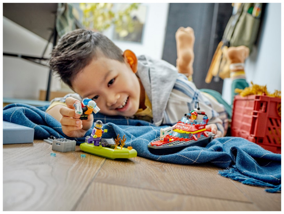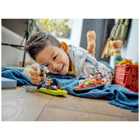 Exciting firefighting adventures await with this LEGO® City Fire Rescue Boat (60373) playset, featuring a cool toy fireboat and speedboat dinghy. Kids can launch LEGO water elements from the boat’s extinguisher and firefighter jetpack to knock out the LEGO flames. Just add the 3 included minifigures and let the fun begin.