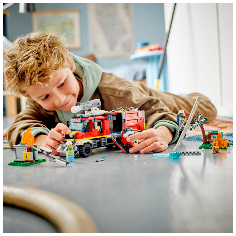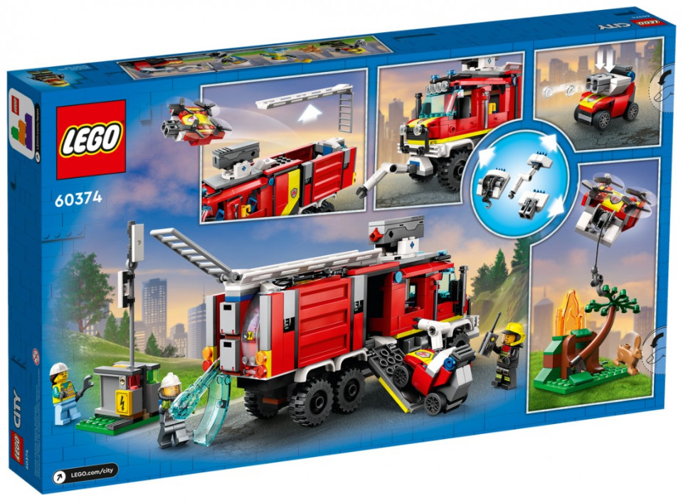 Add a spark to kids’ firefighting play with the LEGO® City Fire Command Truck (60374). This feature-rich toy fire engine comes with a detachable control center, fire drone and land drone. Kids can launch different elements from the truck and fire drone to depict water and foam firefighting action. Just add the forest and city fire settings and 3 minifigures for hours of action-packed firefighting fun!