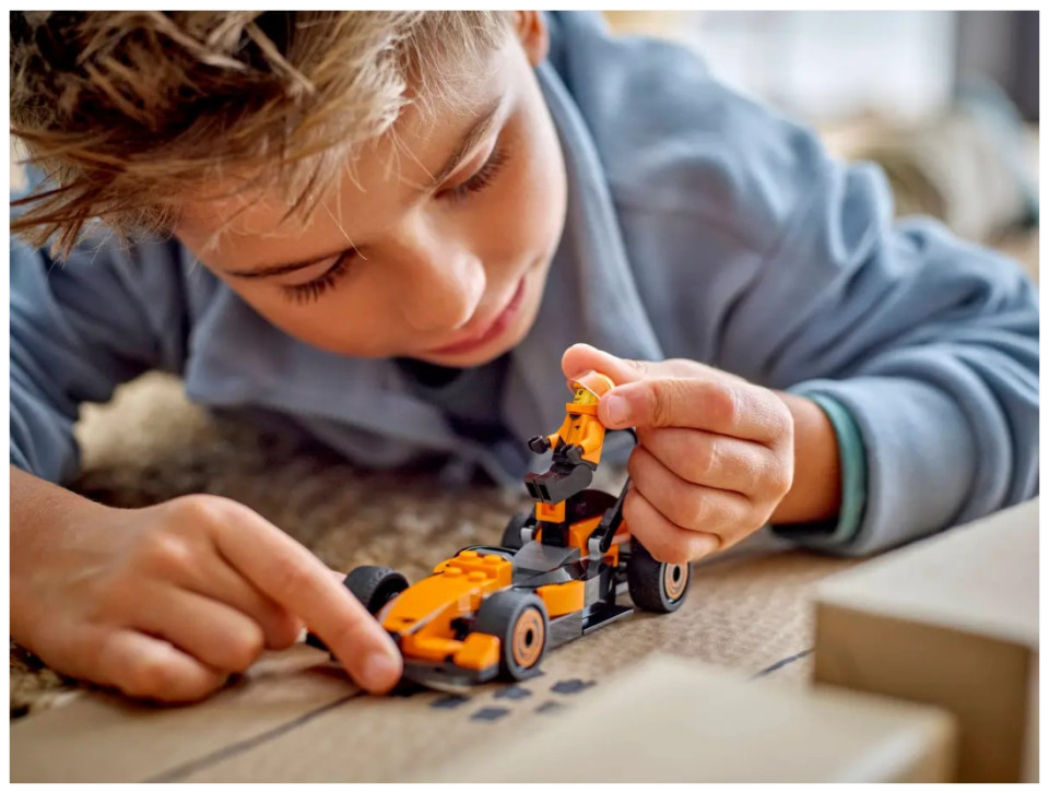 • What’s in the box? – Includes everything kids need to build a McLaren F1® race car with a driver minifigure