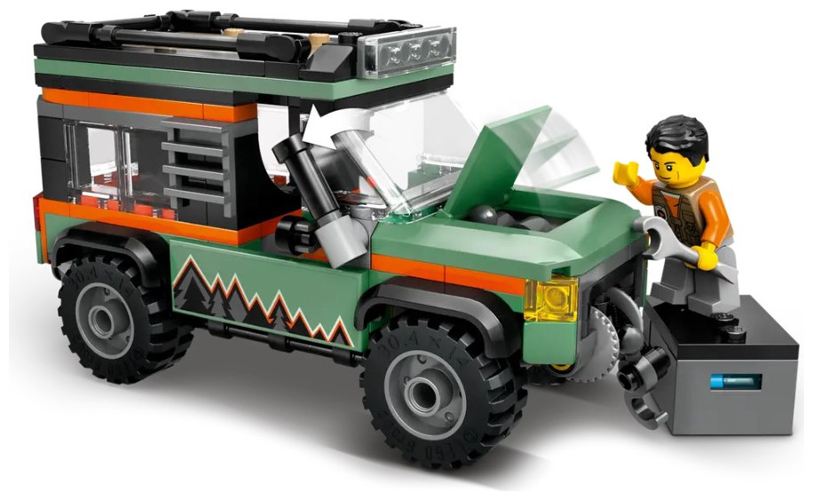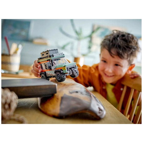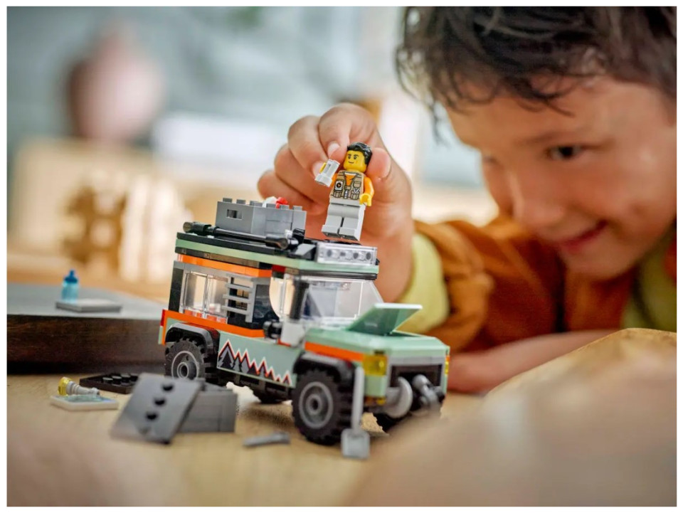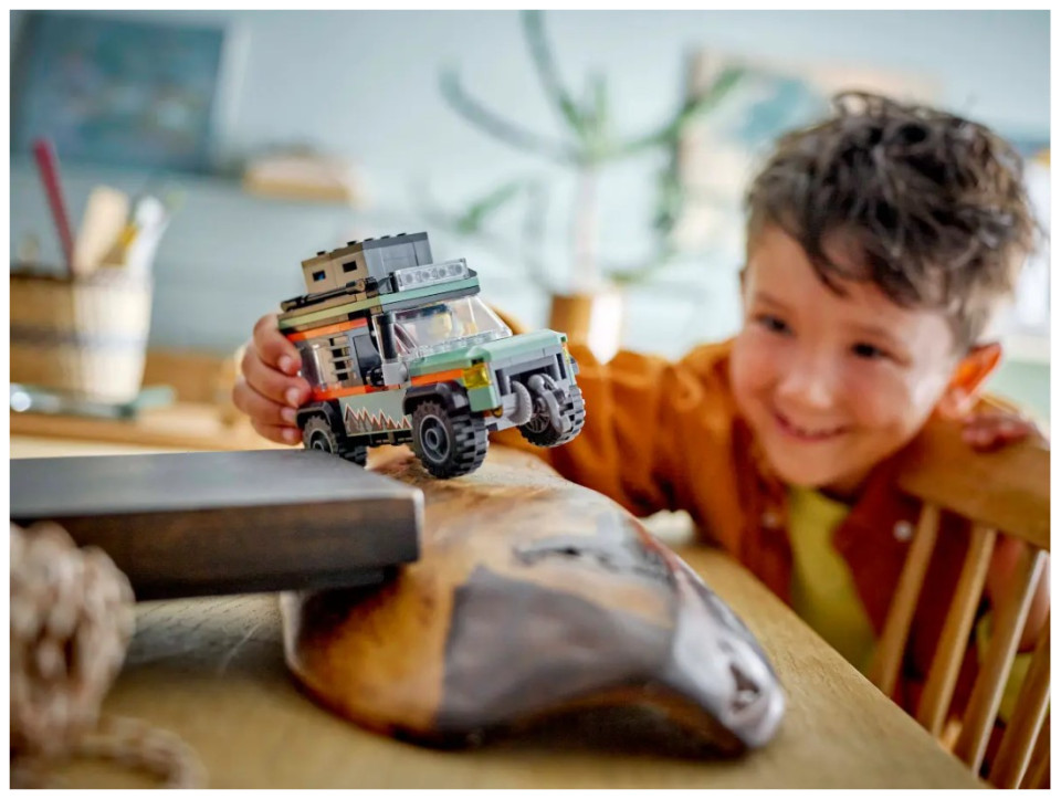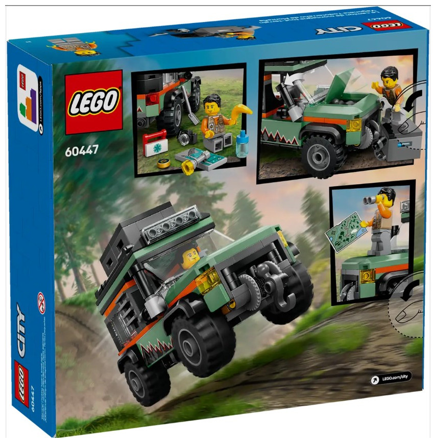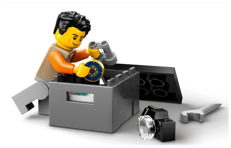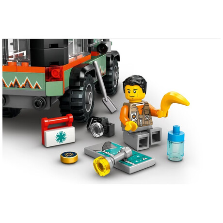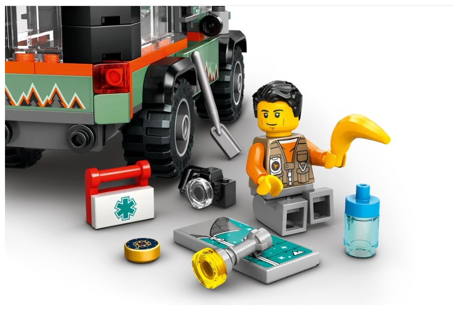• Vehicle set packed with LEGO® minifigure accessories – Includes a toy camera, water bottle, flashlight, map, compass, binoculars, tools and a first aid kit for pretend play