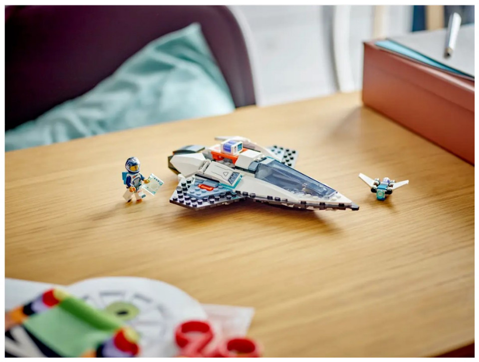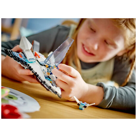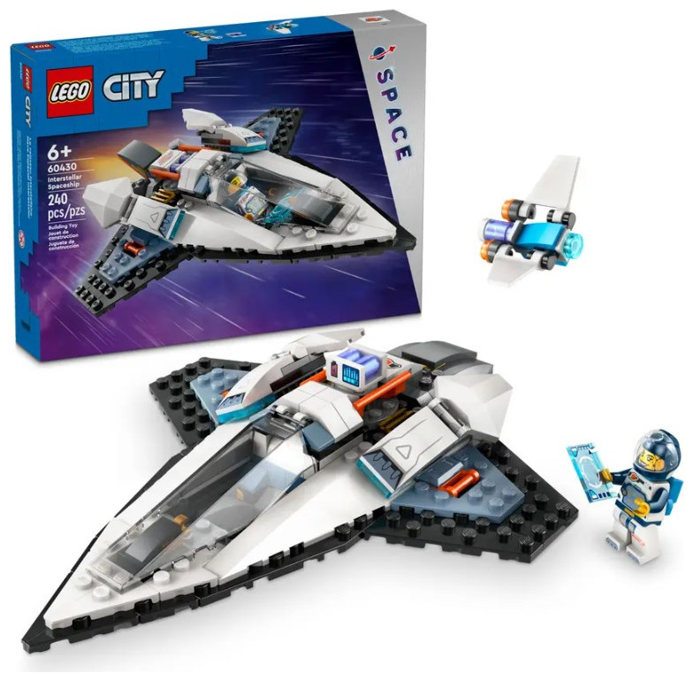 Space adventurers aged 6 and up can enjoy thrilling intergalactic action with this futuristic LEGO® City Interstellar Spaceship toy (60430) playset for kids. This single-seat spacecraft is built for speed. Kids can insert a toy battery pack to engage the fold-out main thrusters for lightning-fast travel to the far reaches of space. The set also includes a drone bot that converts to a jetpack for the included space crew minifigure.