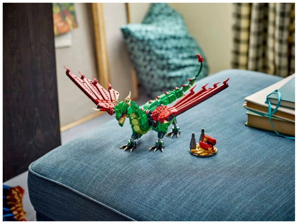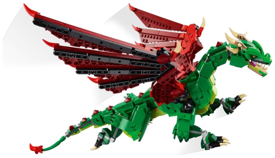 Delight your little time traveler with this LEGO® Creator Medieval Dragon (31161) creature toy playset. Featuring a dragon figure that lets boys and girls aged 9 and up role-play thrilling medieval action, it has a pair of large posable wings that move up and down and fold in and out, as well as posable ankles, toes, neck, jaw, hips and shoulders. It also comes with a treasure chest for added play value.