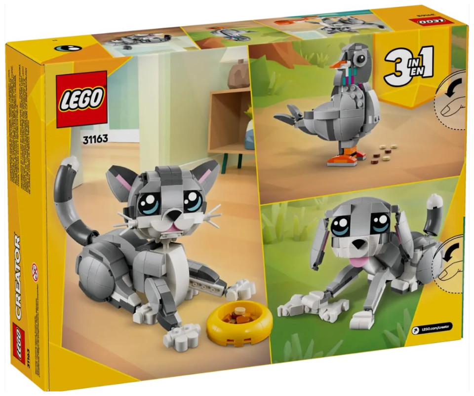 • 3 pet toy building options for kids in 1 box – The LEGO® Creator 3in1 Playful Cat building set lets girls and boys aged 8 and up build and rebuild 3 different animal playsets with the same bricks