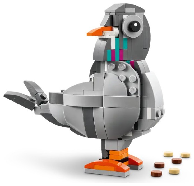 Girls and boys can build 3 different LEGO animal playsets with the same bricks: a posable cat toy who can sit, stand and pounce; a posable cute dog toy with a bone; and a pigeon toy with breadcrumbs. All 3scenes make this a great LEGO gift for kids to display and enjoy imaginative play.