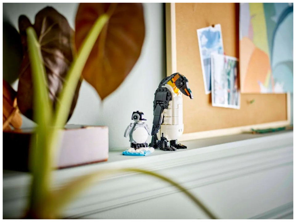 Kids can choose to build 3 different LEGO® animal playsets with the same set of bricks: a posable panda figure with its cub next to bamboo stalks; a posable orca figure with its calf, who can be displayed together on transparent stands; or a posable penguin toy and its chick on a patch of ice and water. All 3 scenes make a great LEGO gift for kids for imaginative play and display.