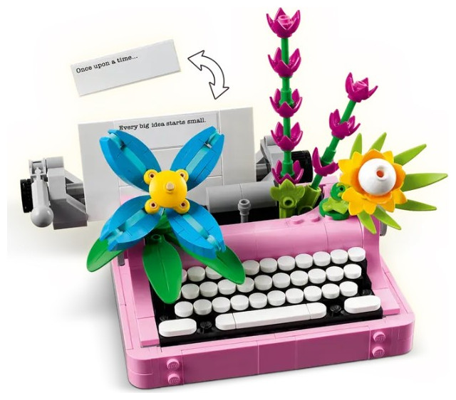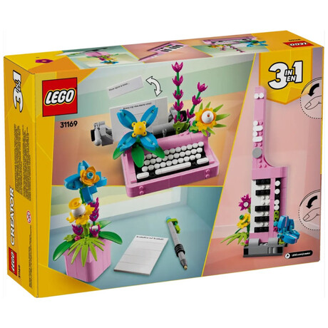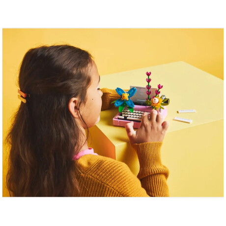 Treat young fans of flowers and art and design with this LEGO® Creator 3in1 Typewriter with Flowers (31169) toy playset. This mini typewriter toy for girls and boys aged 8 and up is decorated with 4 colorful brick-built flowers and features a moving keyboard and platen and a brick-built sheet of paper.