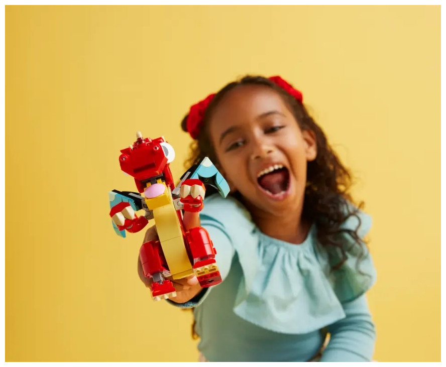 - 3 magical animal toys in 1 set – Boys and girls aged 6+ can build and rebuild 3 different colorful models with the same set of bricks in this LEGO® Creator Red Dragon toy set