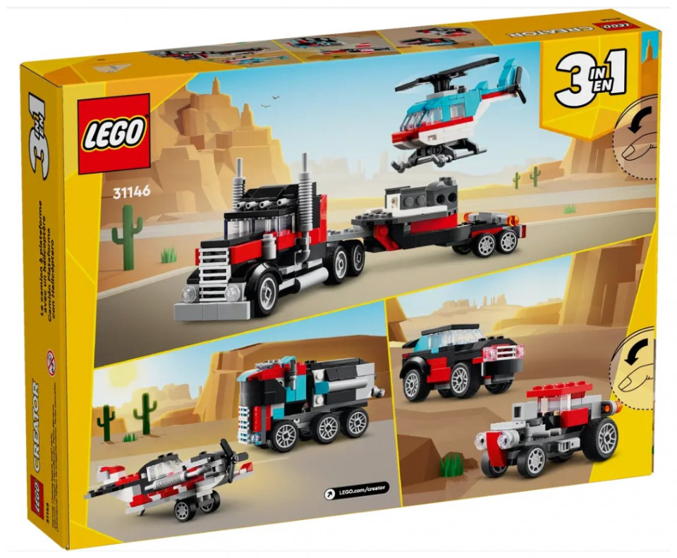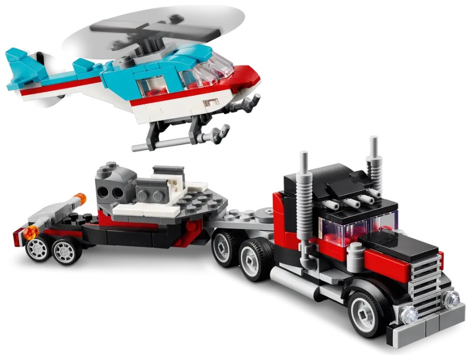 - 3 vehicle toy sets in 1 box – Boys and girls aged 7+ can build and rebuild 3 different sets using the same bricks with this LEGO® Creator Flatbed Truck with Helicopter toy