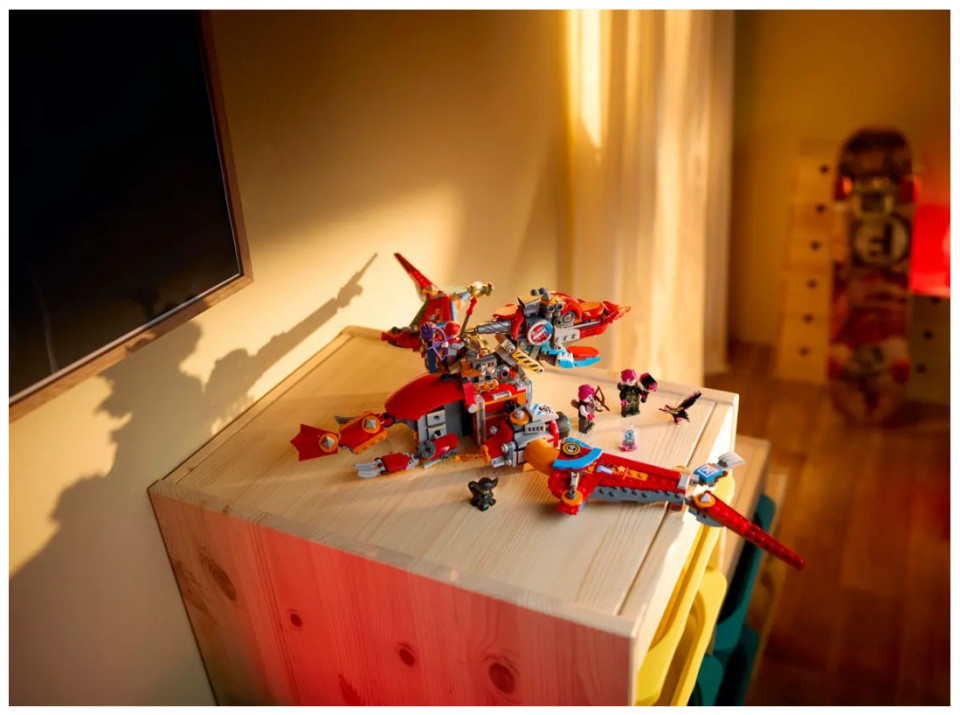 Nightmare villains have stolen the Sandman’s tower in a dream jar and Zoey and Cooper need to get it back. Kids can save the day by transforming Cooper’s LEGO junkyard into a T. rex action figure or pterodactyl toy. Sparking hours of imaginative play, both models feature an articulated head, snapping jaws and thrashing tail, as well as twin shooters.