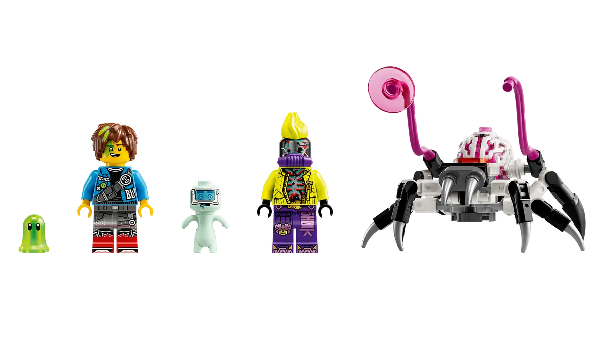 - 2 LEGO® minifigures – The action is brought to life by hero Mateo and villain D-Shock, as well as figures of Z-Blob, the Cyber Brain Spider and a VR Dreamling