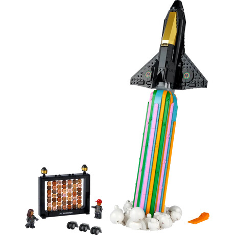 Embark on a fantastic journey with the LEGO® Icons Over the Moon with Pharrell Williams (10391) building project for adults. As a child, Pharrell’s creative optimism and his surroundings at Atlantis Apartments fuelled his curiosity and provided the launchpad that helped him build the future he wanted for himself, and others like him. The inspiring display model depicts a space shuttle heading for the stars, propelled by a colourful jet stream. This set also includes Pharrell Williams and Helen Williams astronaut minifigures, plus 49 interchangeable character heads.