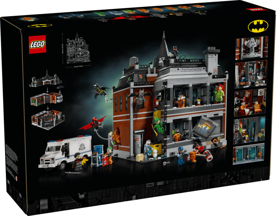 The modular building set comes with 16 LEGO minifigures: Batman, Batwoman™, Batwing™, Robin™, Mr. Freeze™, The Riddler™, Poison Ivy™, Catwoman™, Scarecrow™, Harley Quinn™, Bane™, The Joker™, The Penguin™, Killer Croc™ and 2 security guards. The model splits into 3 segments – ground floor, first floor and roof – and removable elements make it possible to access the interior. Added treats include an inmate delivery van, opening prison cells and 65 stickers referencing Batman lore. Each section comes in one of 24 bags, which makes it perfectly suited for use as a Batman Advent calendar.