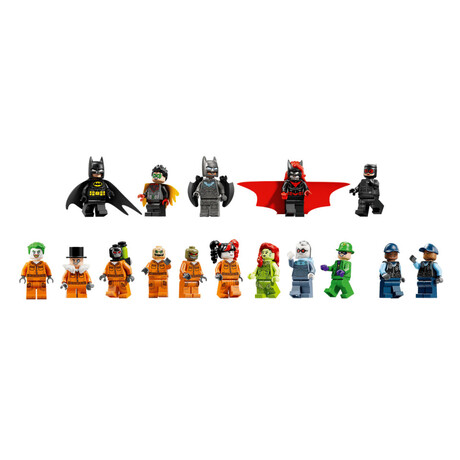 - LEGO® minifigures – Batman™, Batwoman™, Batwing™, Robin™, Mr. Freeze™, The Riddler™, Poison Ivy™, Catwoman™, Scarecrow™, Harley Quinn™, Bane™, The Joker™, The Penguin™, Killer Croc™ and 2 security guards
