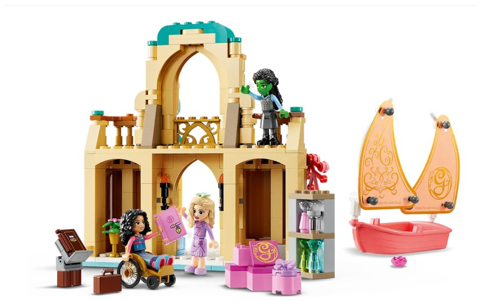 - Magical doll’s house playset and sailing boat for kids – The LEGO® Wicked Glinda, Elphaba & Nessarose at Shiz University set recreates an iconic moment from the film where the girls meet for the first time