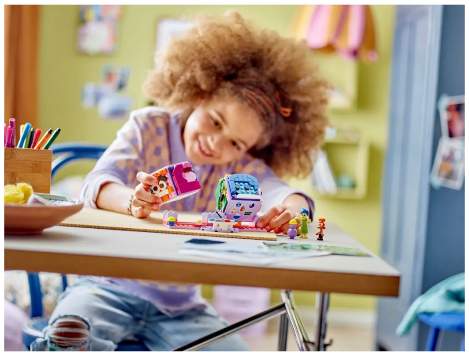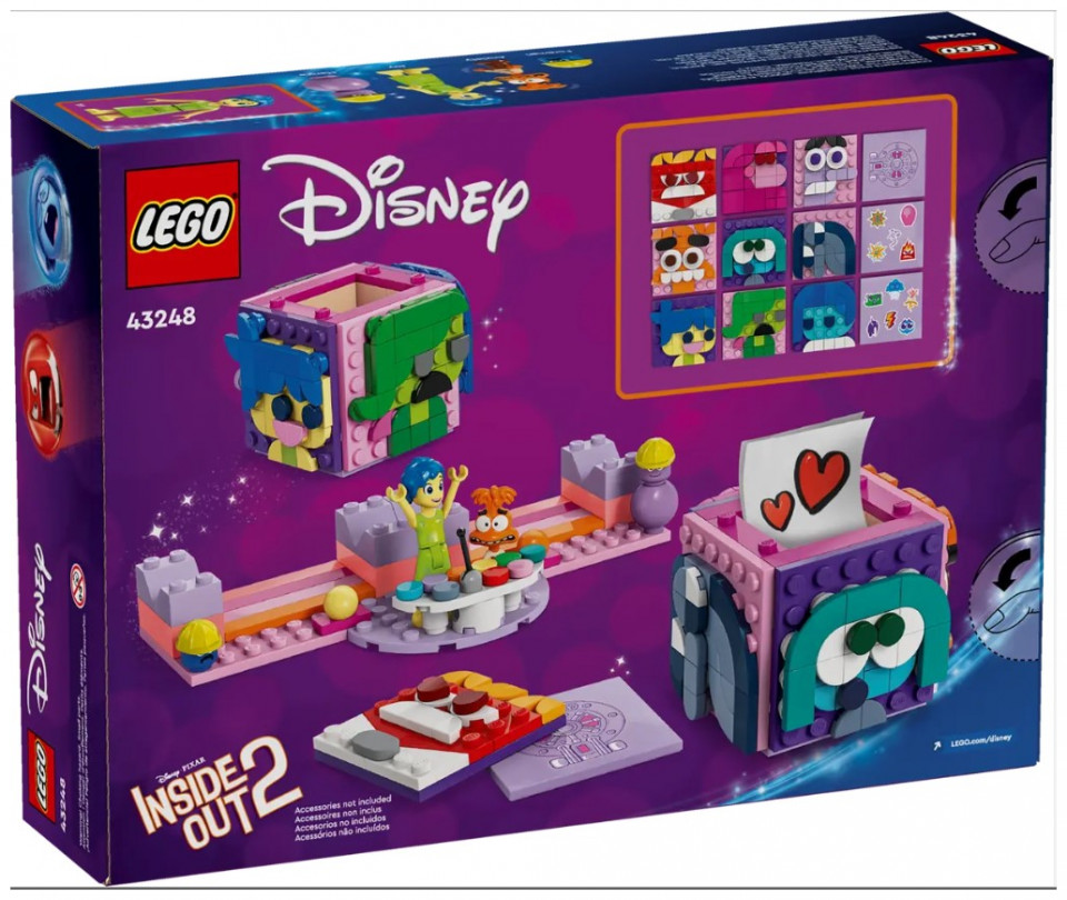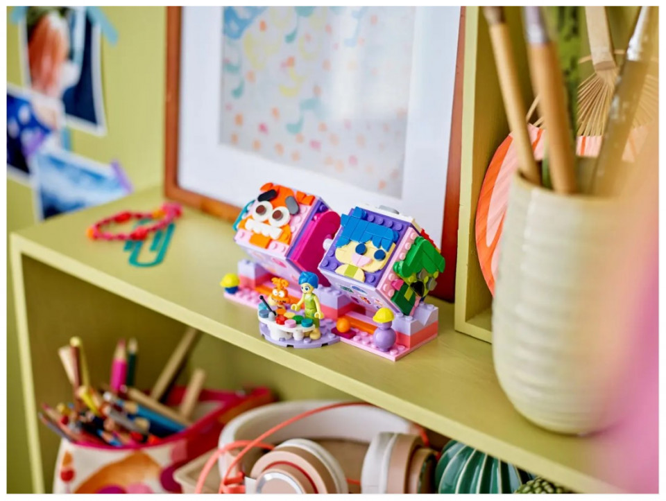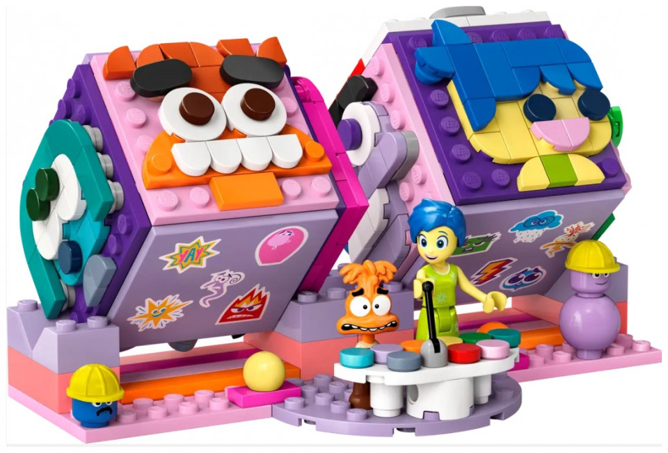 - Buildable mood toys – This creative buildable set features 2 mood cubes, 9 changeable mood plates, a display stand and Joy and Anxiety LEGO® ǀ Disney mini-doll figures from Pixar