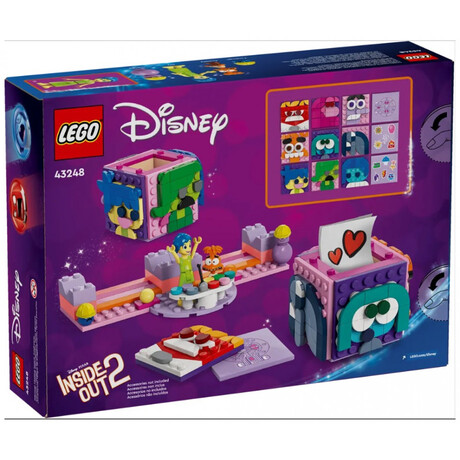 Engage kids and Inside Out 2 fans aged 9+ with this LEGO® ǀ Disney Inside Out 2 Mood Cubes from Pixar (43248) buildable fantasy toy for play and display. Featuring 2 buildable cubes, each with a space for little treasures, 9 mood plates, a display stand to hold the cubes, Joy and Anxiety LEGO ǀ Disney mini-doll figures from Pixar with matching colored memory balls, plus Foreman and Margie LEGO ǀ Disney mind worker figures with hard hats.