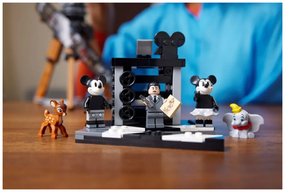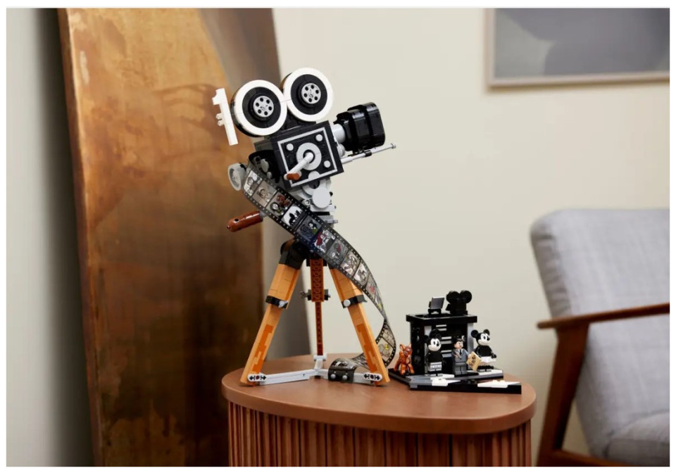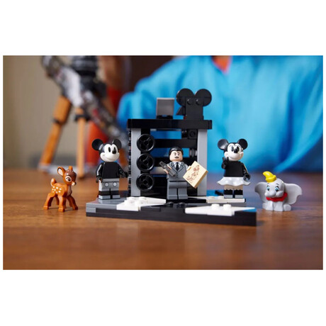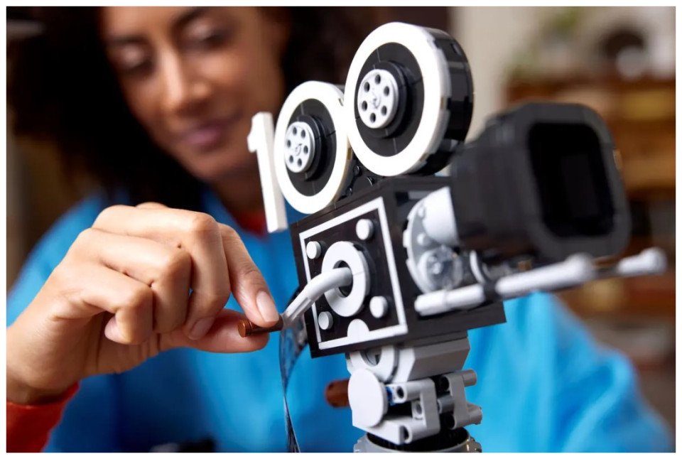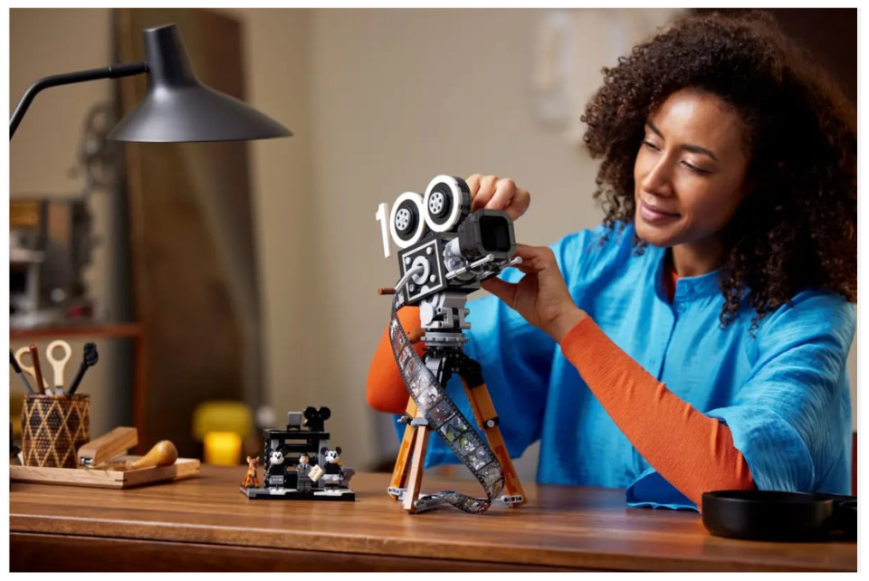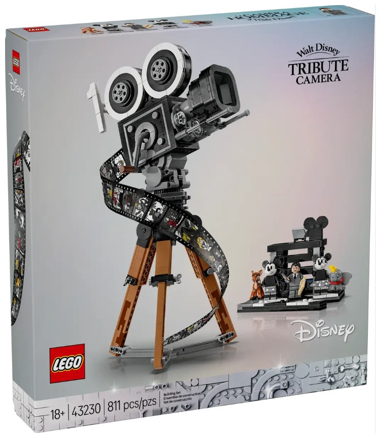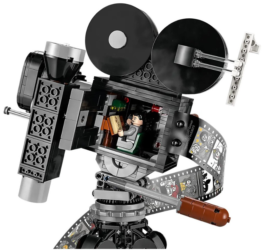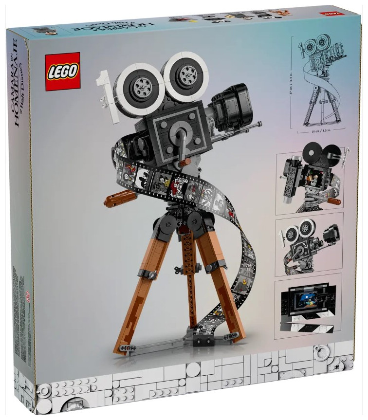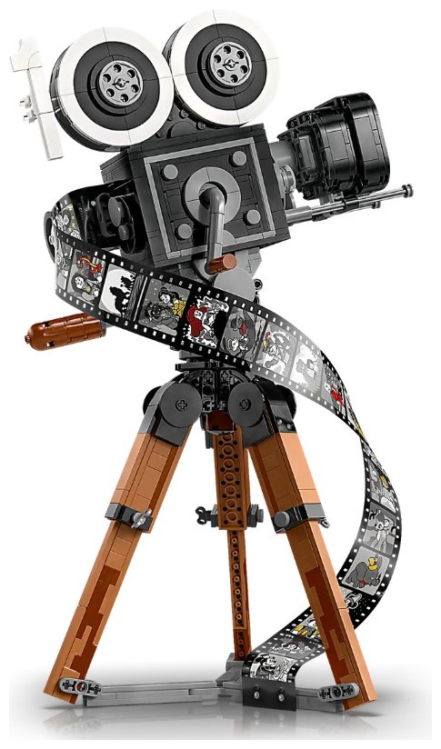 Showcase your passion for all things Disney with this eye-catching LEGO® | Disney Walt Disney Tribute Camera (43230) set for adults. This detailed collectible set features a vintage-style movie ‘camera’ with a hinged back panel with a surprise and a film strip showing stills from 20 historic Disney films, a director’s clapperboard with space for the 3 LEGO | Disney minifigures, 2 LEGO animal figures and a multiplane camera with 3 printed screens showing how Disney’s The Old Mill short was made. The set also has a turning crank, sliding matte box and lenses that can be rotated on the old-fashioned movie camera, plus a movable lower stick on the clapperboard.