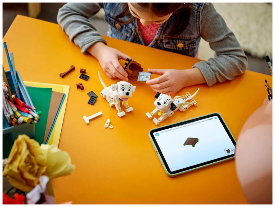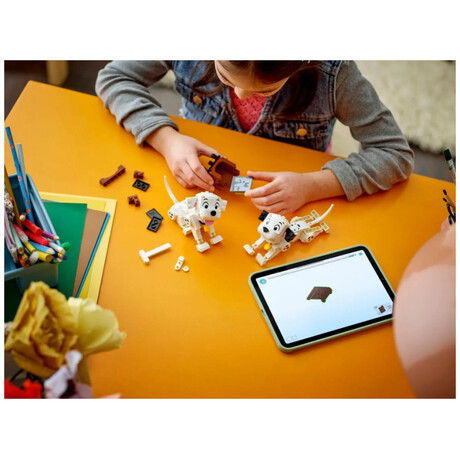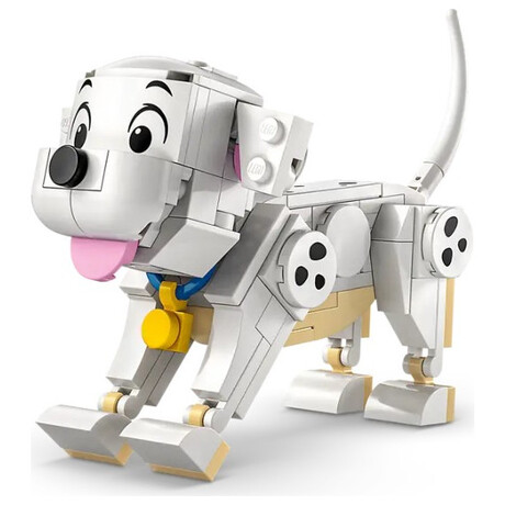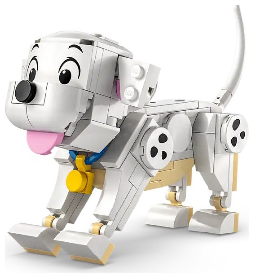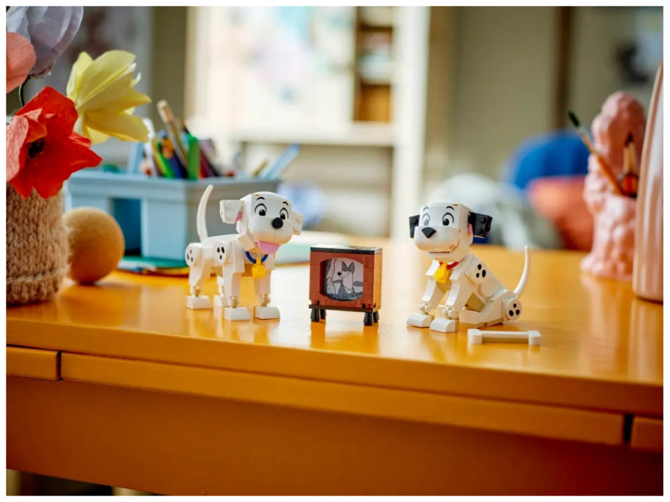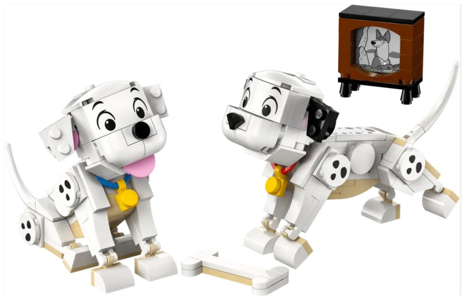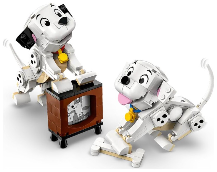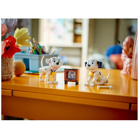 - Dalmatian puppies everywhere – This kids’ building toy features Lucky and Penny LEGO® ǀ Disney characters from the classic movie 101 Dalmatians, plus a brick-built bone and a small TV with screen
