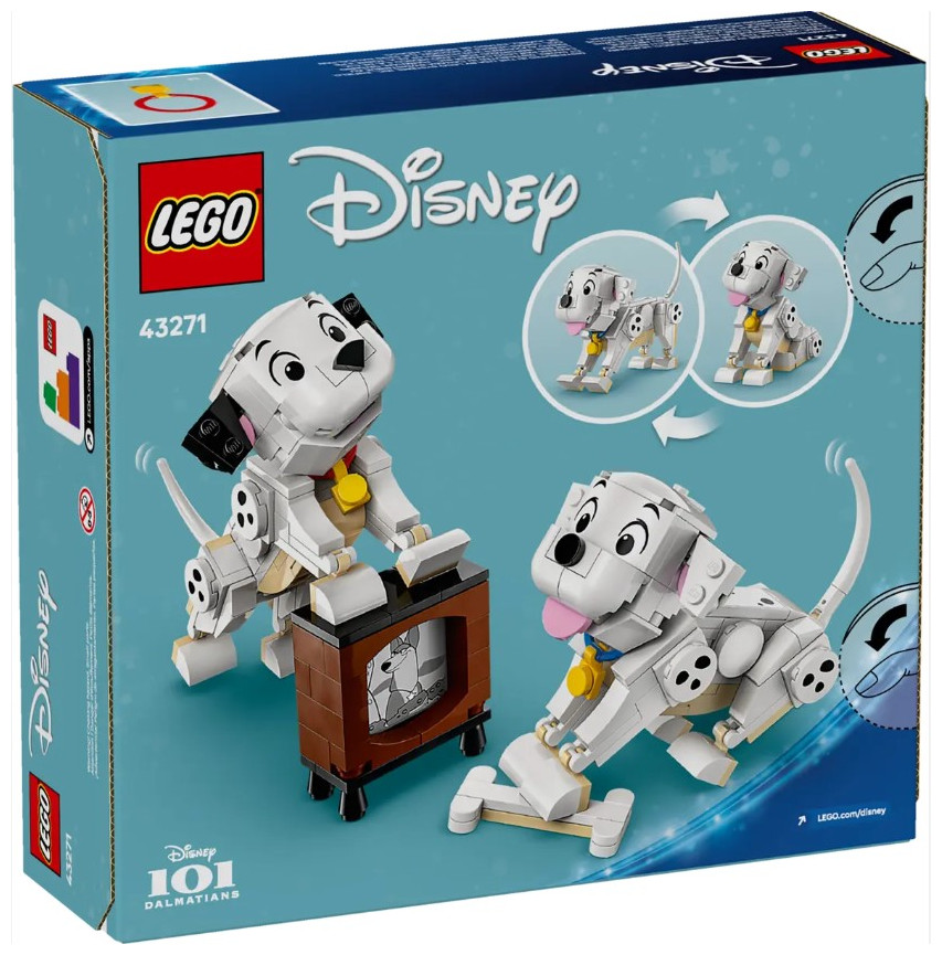 Thrill kids or animal fans aged 6 years and up with the Lucky & Penny 101 Dalmatians Puppies (43271) in this LEGO® ǀ Disney building toy. Packed with play options, the building toy includes 2 Dalmatian puppy characters from the Disney classic 101 Dalmatians, plus a brick-built toy bone and a small TV. The LEGO ǀ Disney puppy characters have movable heads, legs and tails, and can be posed in a variety of ways.