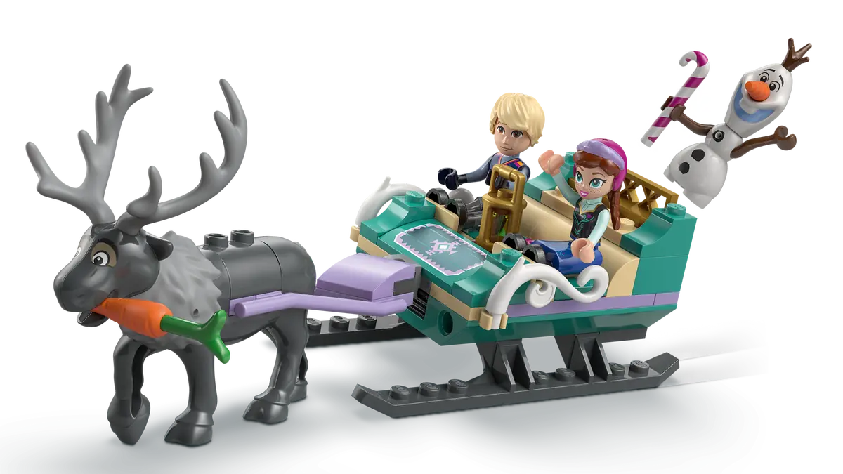 - Building model kit – Sleigh, hot chocolate stand,stable, Anna and Kristoff LEGO® ǀ Disney Frozen mini-doll figures, Olaf LEGO ǀ Disney snowman figure and a Sven LEGO ǀ Disney reindeer figure