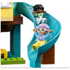 First kids build the ultimate adventure play area with 3 levels, a super-long slide and a wobbly bridge to cross. If rain clouds gather, the model reconfigures as a cozy treehouse. The third model consists of 2 tree houses, each with a slide, and a garden where kids help collect the fruit and haul it up to the tree house using the cute pulley.