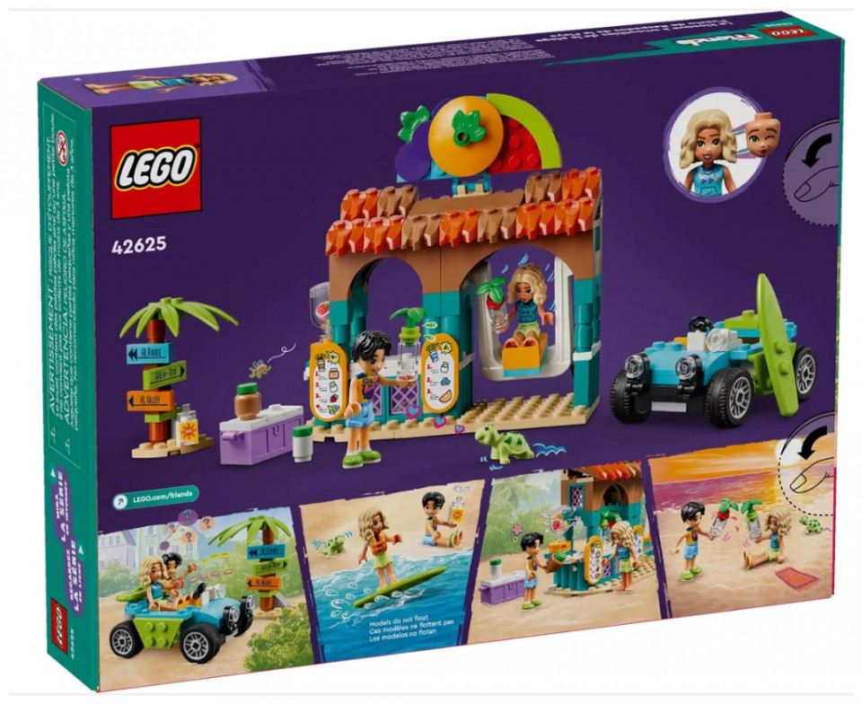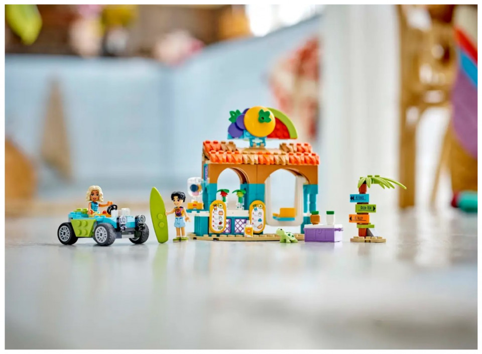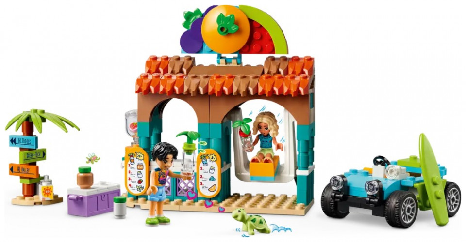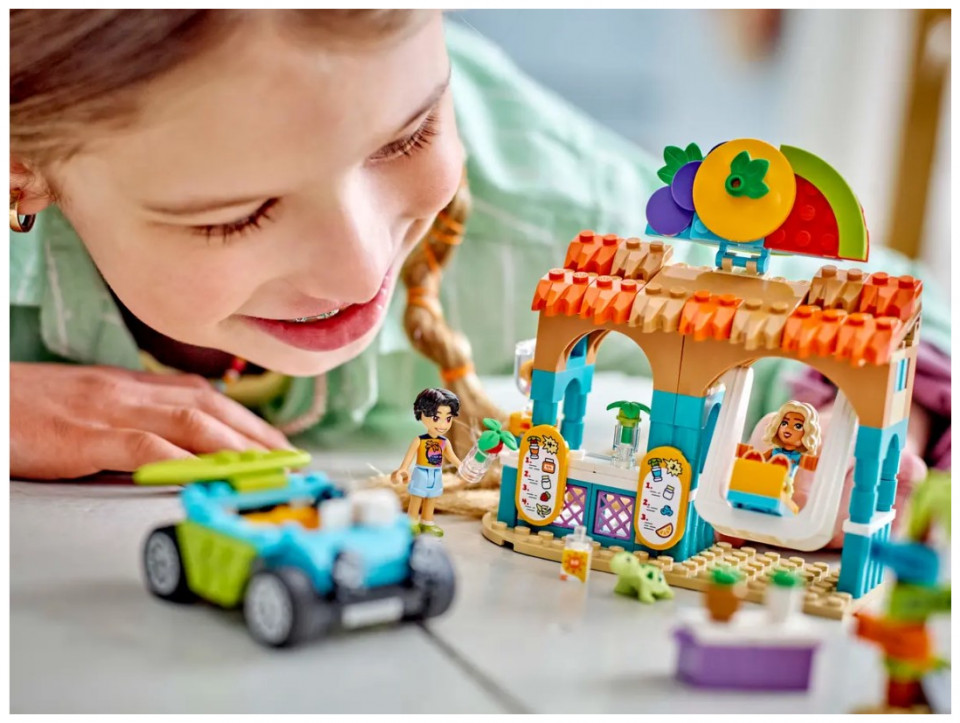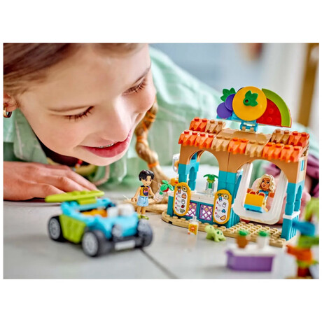 - Kids’ play food set – Girls and boys aged 6+ can enjoy smoothie-making fun at the beach with this LEGO® Friends Beach Smoothie Stand role-play toy, which includes 2 mini-dolls and a turtle figure
