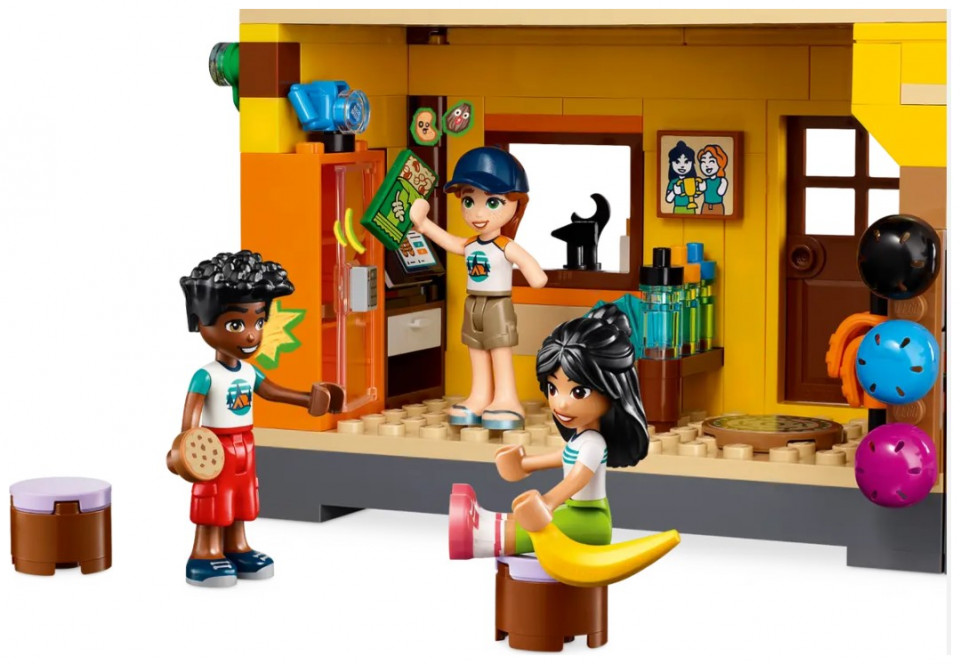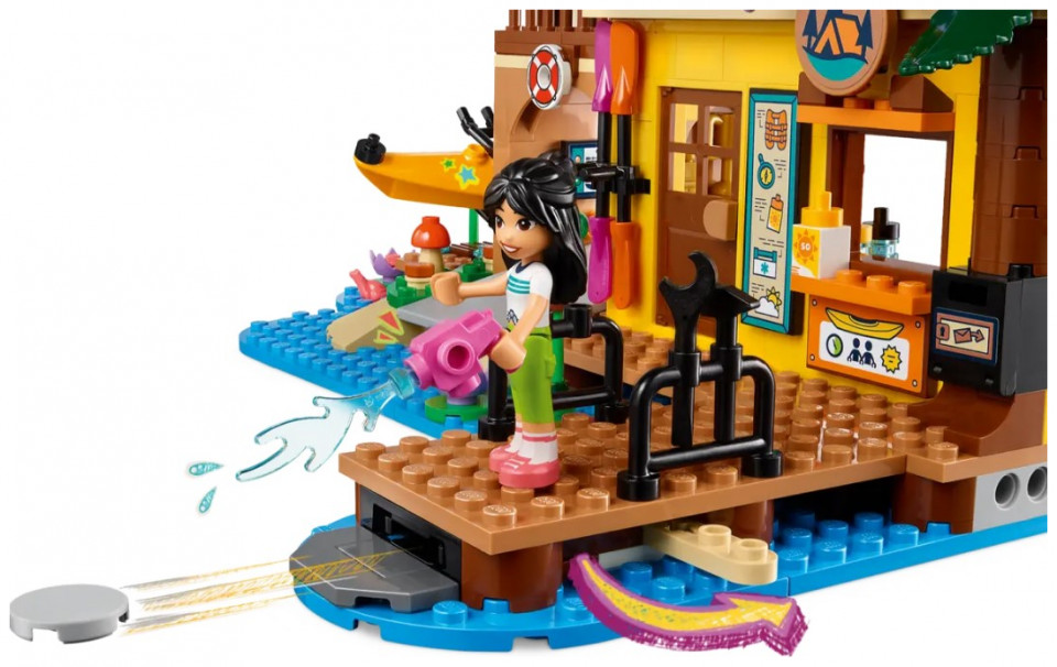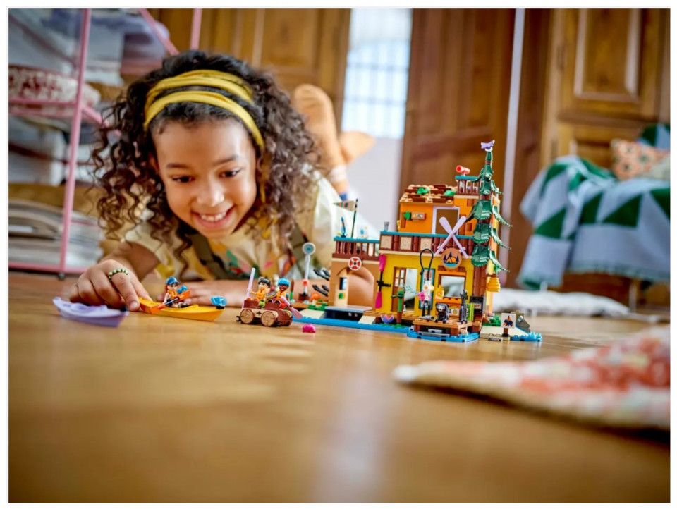 This LEGO Friends set is packed with accessories for endless storytelling possibilities. Inside the adventure camp there’s equipment to rent, a fridge with snacks, a shower, a first aid kit, trophies and more. After a fun-filled day, the friends can relax in the hangout zone or enjoy a game of table tennis.