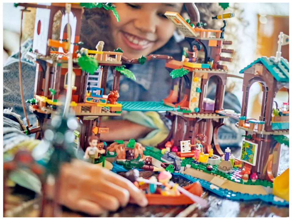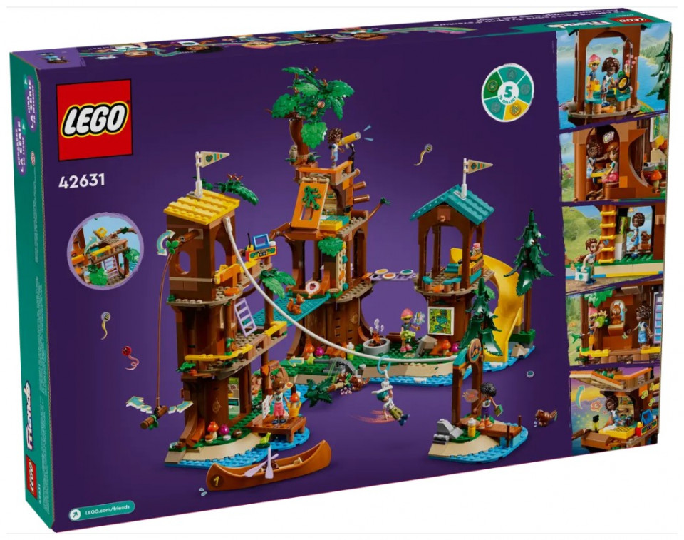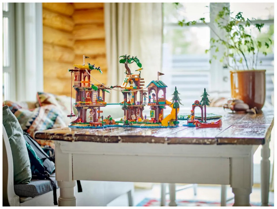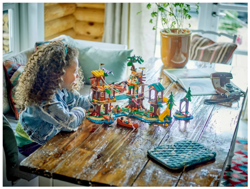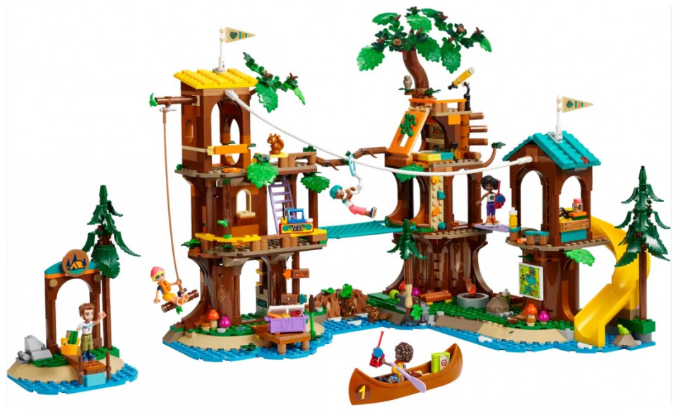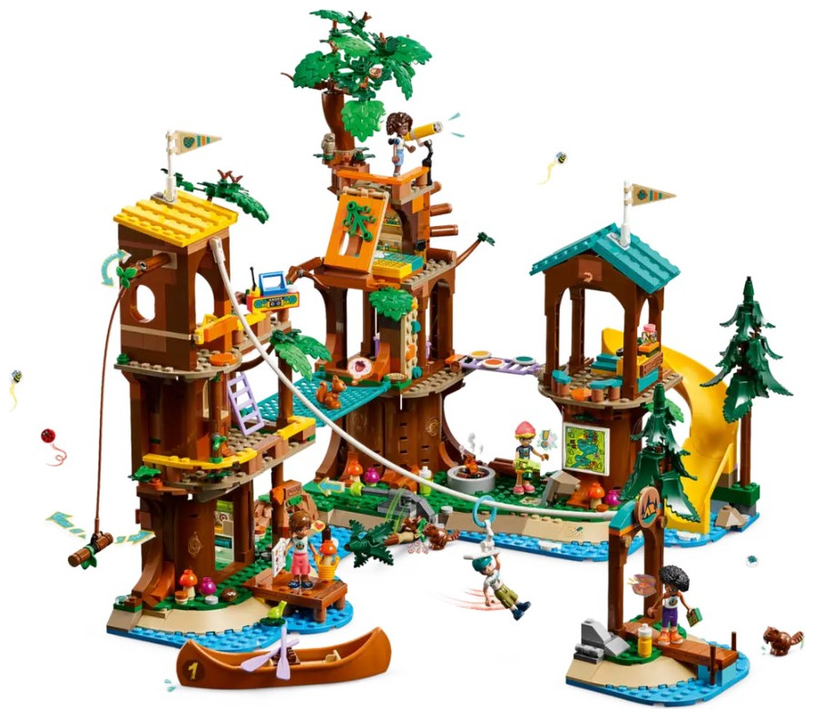 - A camping playset for kids – The LEGO® Friends Adventure Camp Tree House toy for girls and boys aged 8+ comes with 5 mini-dolls, lots of animal figures, a canoe and sports toy accessories