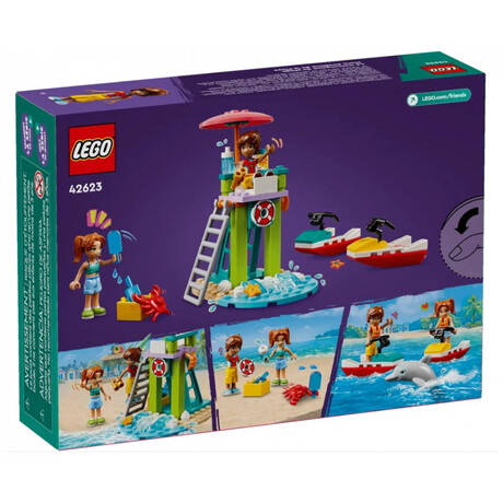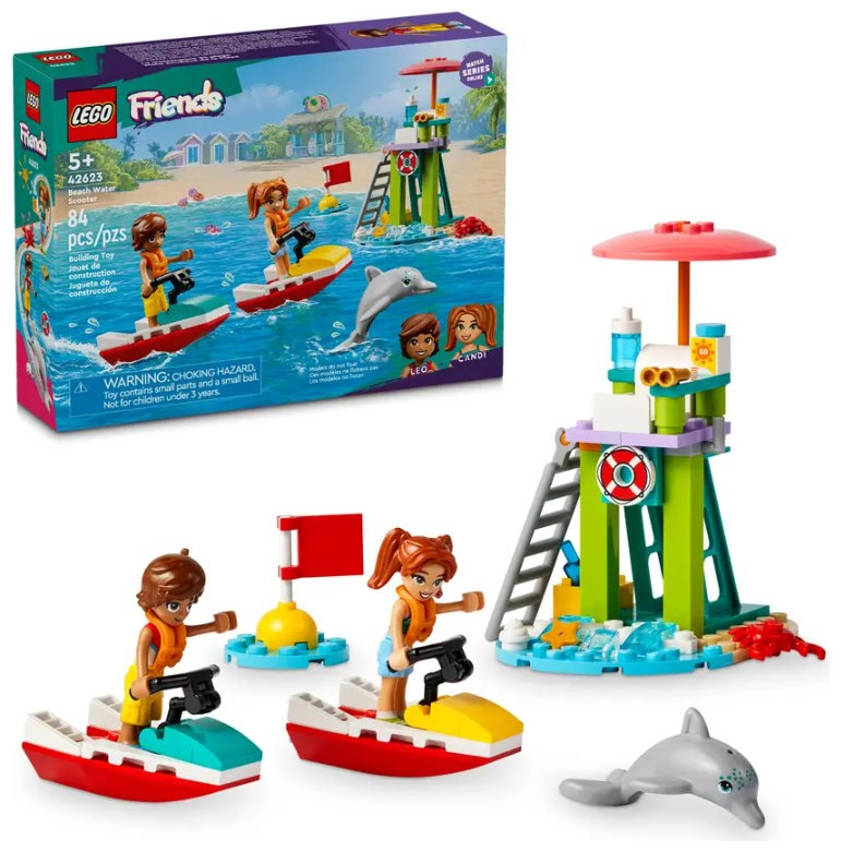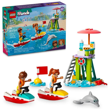 Let kids create fun ocean adventures with this LEGO® Friends Beach Water Scooter (42623) lifeguard toy for kids aged 5+. The set includes 2 mini-dolls, a dolphin figure and accessories to inspire imaginative play.
