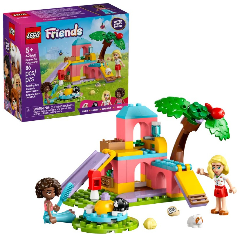Here’s a pretend-play building kit for girls, boys and animal-lovers aged 5 and up who would love to create their own guinea pig adventures. The LEGO® Friends Guinea Pig Playground (42640) comes with 2 LEGO Friends minidolls and 2 guinea pig figures for hours of role-play fun.