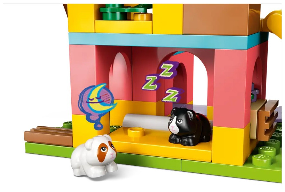 - Playground with slide and merry-go-round – Playtimes are packed with fun as the guinea pigs ride down the slide and spin on the merry-go-round before visiting the feeding and grooming areas