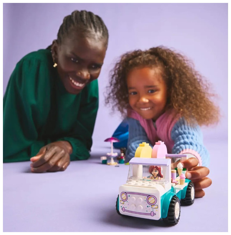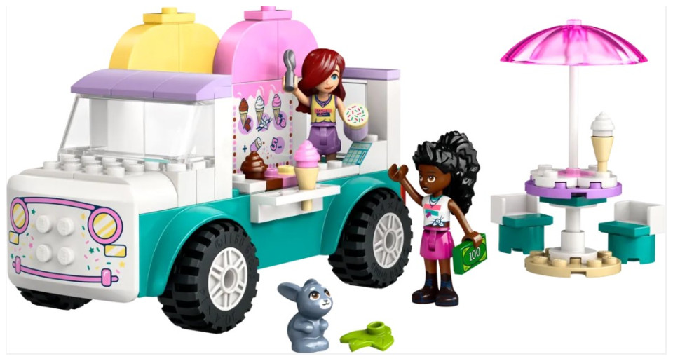 • Pretend-play ice cream cart building kit – This kids’ Heartlake City Ice Cream Truck for girls and boys aged 4 and up comes with 2 minidolls, a bunny figure and accessories for creative play