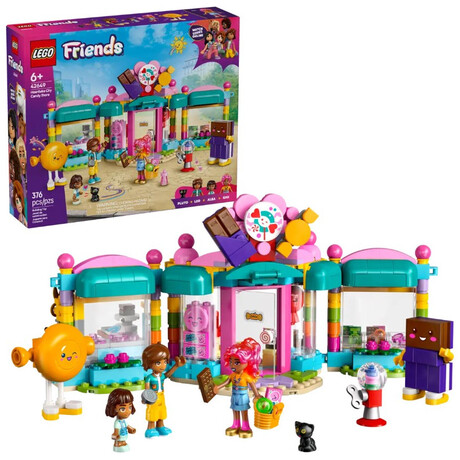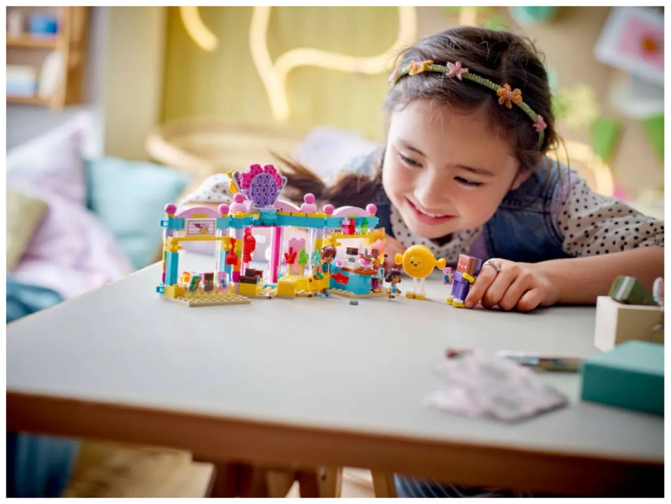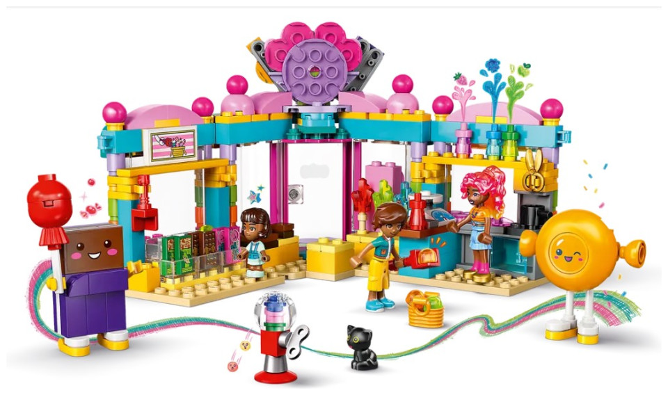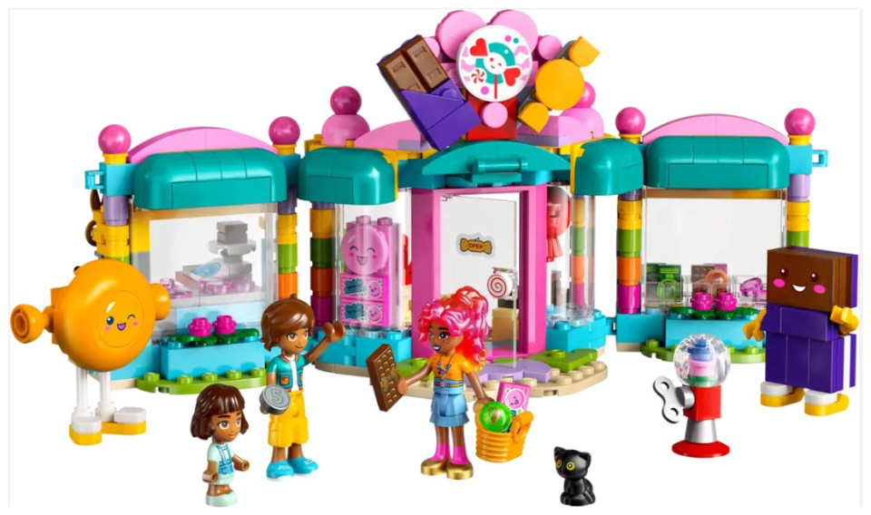 - Kids’ pretend-play set packed with imagination – This Heartlake City Candy Store for girls and boys aged 6 and up comes with 2 mini-dolls, a micro-doll and a cat figure, plus accessories for role play