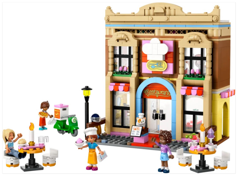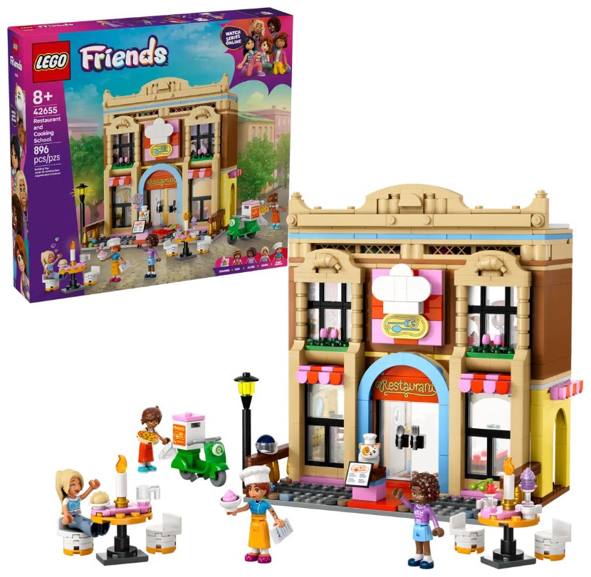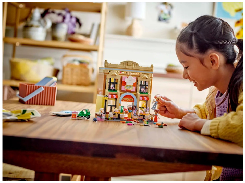 Turn kids’ pretend play into a gourmet adventure, as girls and boys aged 8 and up invent tasty dishes at the LEGO® Friends Restaurant and Cooking School (42655). This detailed role-play toy features a 2-story building with a cookery school kitchen and an outdoor dining area, plus 4 mini-dolls and a cat figure. The set makes a great birthday gift for kids who enjoy creative play.