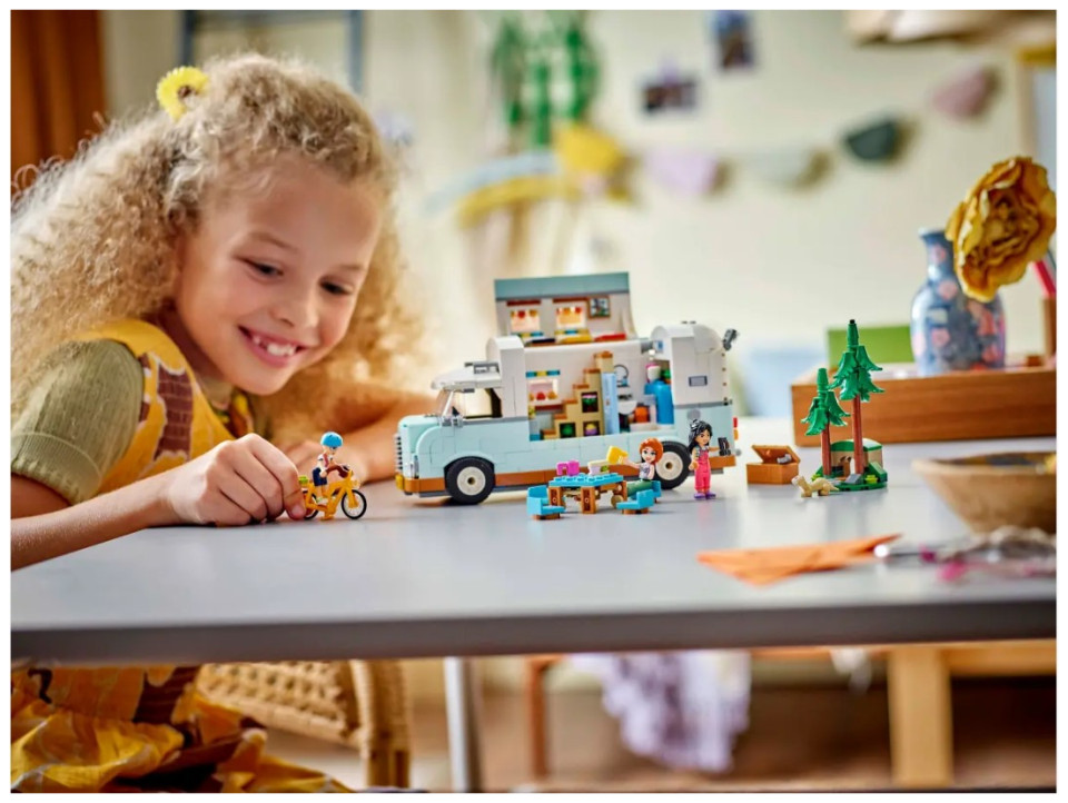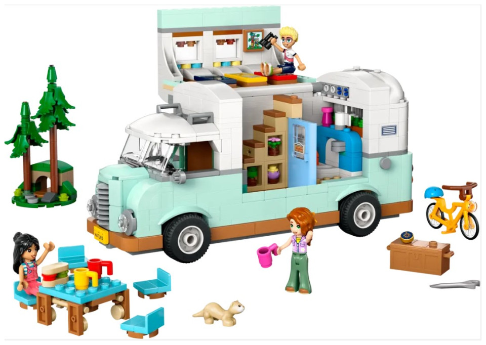 - Camping role play – This Friendship Camper Van Adventure building set for girls and boys aged 7 and up comes with 3 minidolls and a ferret figure for kids who love to tell creative friendship stories