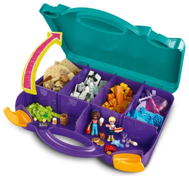 - Customizable organizer case – This LEGO® set comes with a sticker sheet so kids can have fun customizing the suitcase, which stores the pieces ready for the next creative vacation adventure