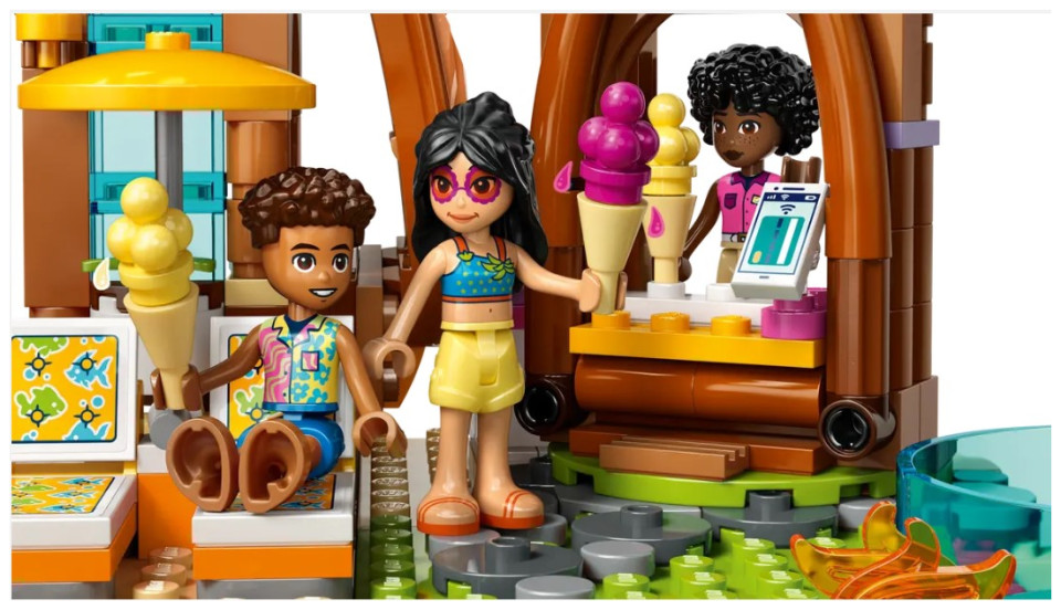 - A creative toy with beach resort accessories – This LEGO® set comes with lots of accessories, including drinks, ice cream cones, surfboards, helmets, a shovel, camera, suitcase and a beach wheelchair