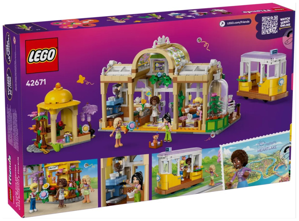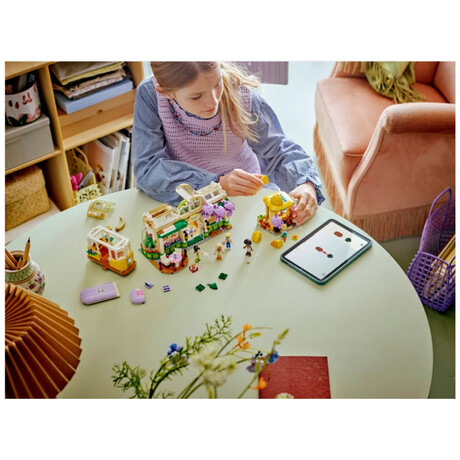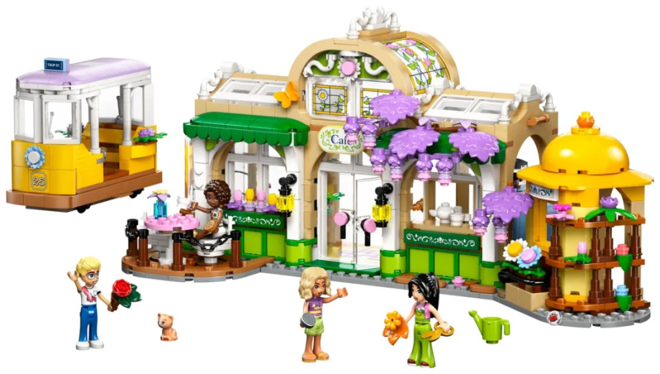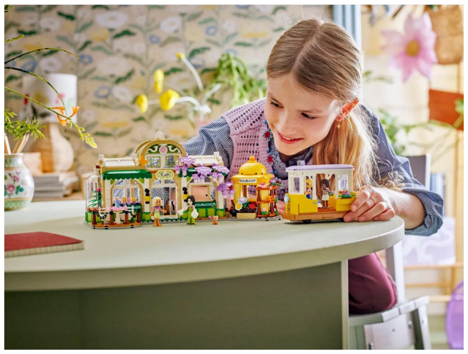 Discover a bounty of flowers and plants throughout this set, which tells the story of Aliya, Olly, Nova, Esma and Nugget the cat, who love to hang out at the flower shop and café. The set is packed with features to inspire creative storytelling. There’s a cute streetcar toy for the characters to ride in and a café with an outdoor seating area and a kitchen with a coffee machine. There’s also a flower stand with bouquets and potted plants for sale. After playing with the set, kids can display the model on a shelf or table to enjoy the pretty flower displays day after day.