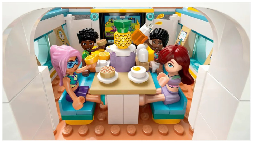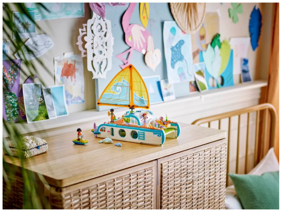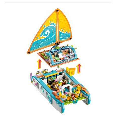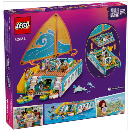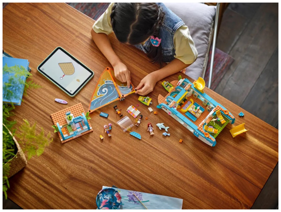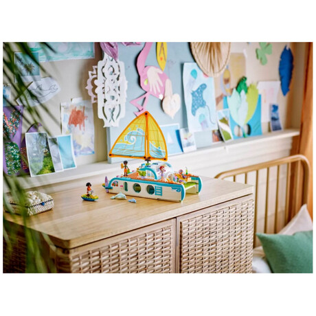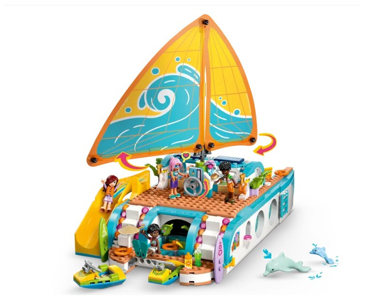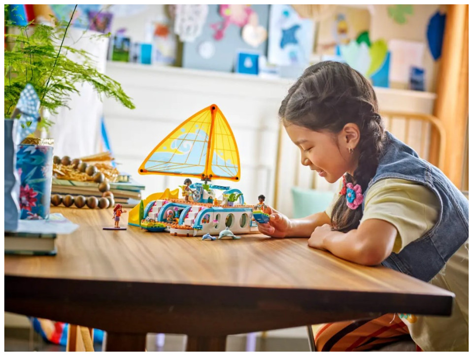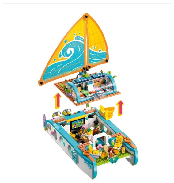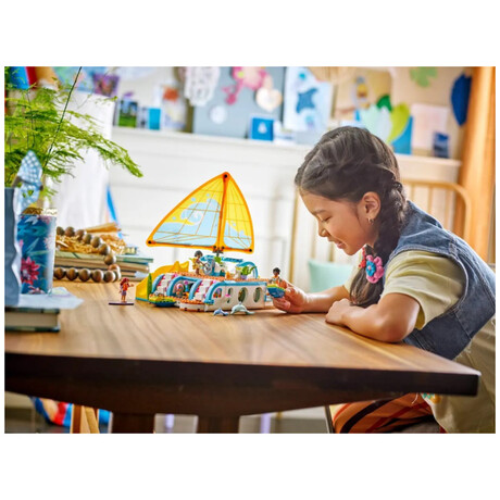 Travel Boat Adventure (42664) for girls and boys aged 8 and up comes with 4 LEGO Friends minidolls and heaps of accessories for imaginative play. The detailed boat is packed with realistic features like the sail, which moves when kids turn the wheel!