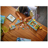 - Vehicle playset with accessories – This LEGO® travel playset comes with accessories for role play, including 2 water scooters, a surfboard, flippers, life vests, food and drinks, a floatie and more