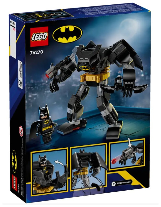 This Batman™ mech toy is ideal for fans of super-hero action and robot toys aged 6 and up. The large-scale Batman figure and super-hero minifigure pilot make Batman Mech Armor (76270) the perfect treat for young crimefighters everywhere.