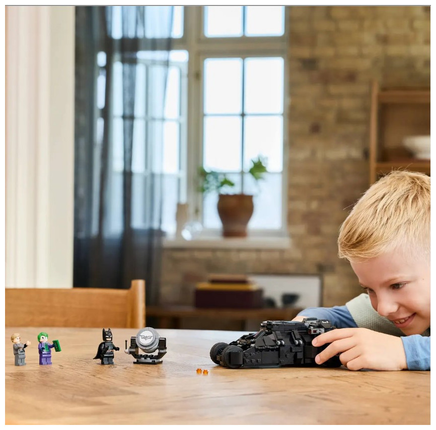 This LEGO Batman super-hero playset comes with 3 popular minifigures: Batman armed with his Batarang™, The Joker holding a wad of cash, and Two-Face with his trademark si lver coin. The buildable Tumbler Batmobile opens to reveal an instrument panel and cockpit with room for Batman. A removable flame element projects from the vehicle’s tailpipe. The Bat-Signal™ projector (does not light up) tilts and turns 360 degrees in both directions. For added digital fun, builders can zoom in, rotate models in 3D and track their progress using the fun, intuitive LEGO Builder app.