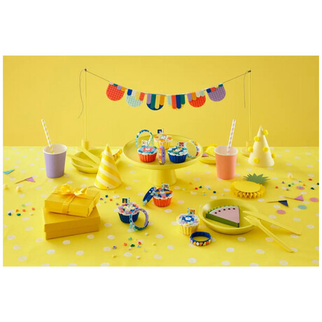 • What’s inside – Open-ended party fun awaits. The kit includes 6 bunting elements with string, 6 cupcakes, 6 bracelets, loads of tiles, charms, a shareable sticker sheet and lots of design inspiration