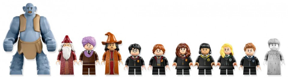 - 11 characters – Harry Potter™, Ron Weasley™,Hermione Granger™, Albus Dumbledore™, Professor Quirrell, Leanne, Daphne Greengrass, Terry Boot, Professor Vector, the Fat Friar and a mountain troll