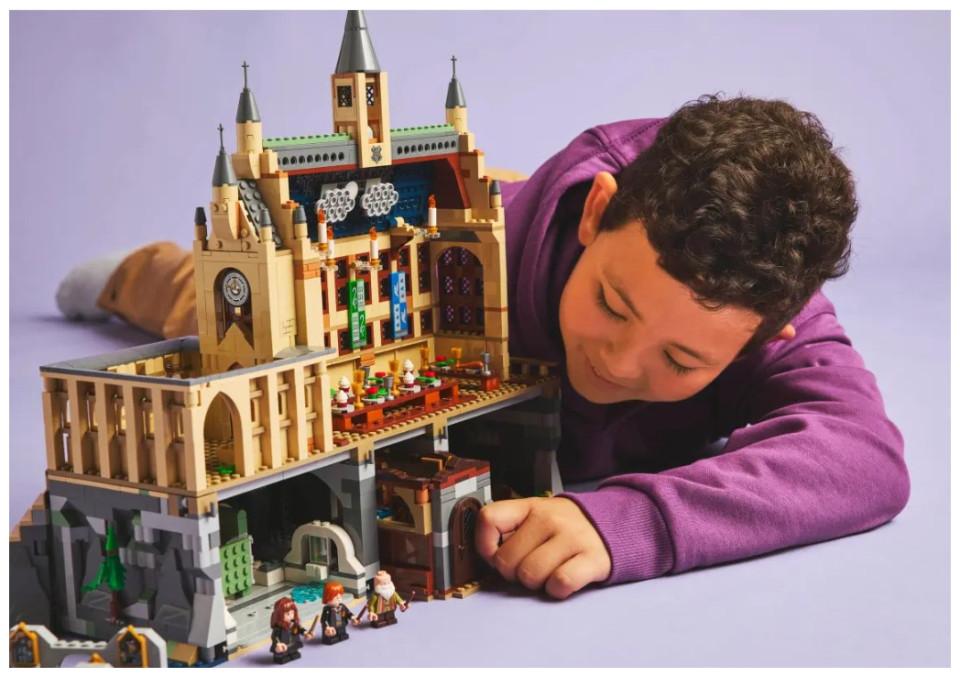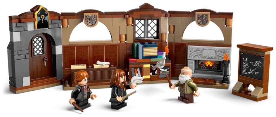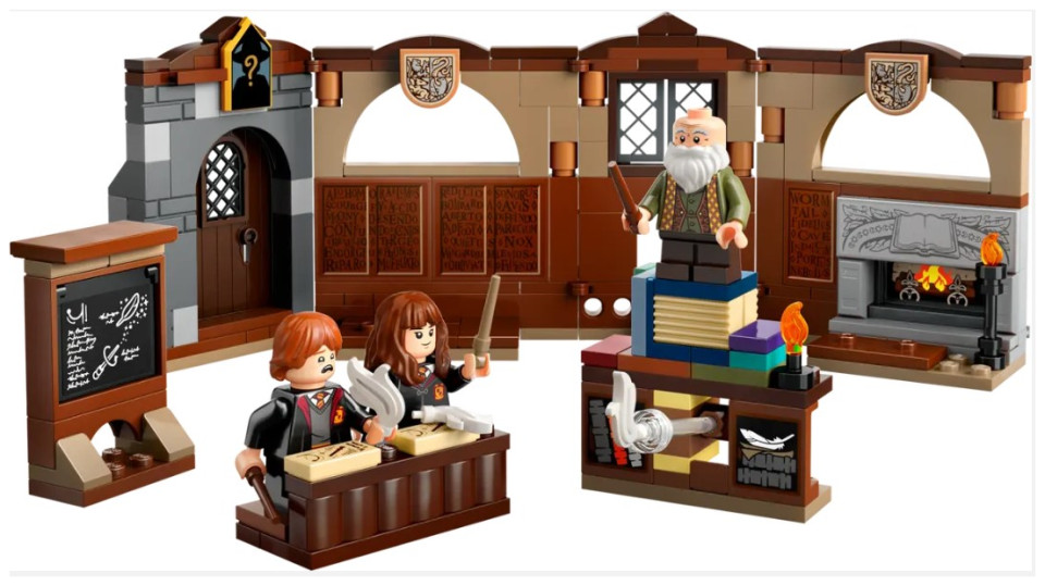 The buildable Hogwarts classroom folds out for easy play and features a Wingardium Leviosa feather-levitation function, detachable desks for the students, a detachable chalkboard with spell instructions and more. This magical toy also includes LEGO Harry Potter characters – Ron Weasley™, Hermione Granger™ and Professor Flitwick – to role-play unlimited imaginative stories.