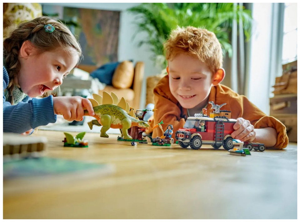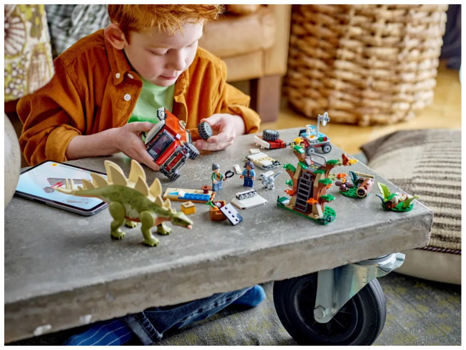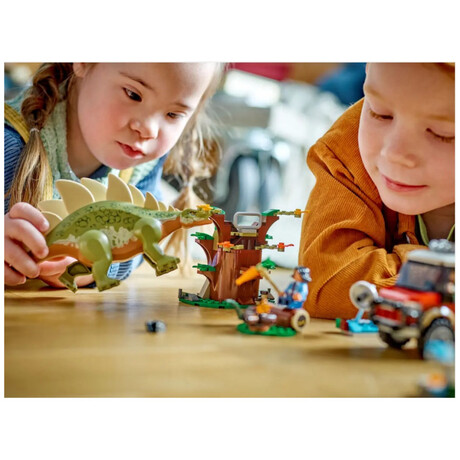 - Creative adventure toy – Features a molded LEGO® Stegosaurus with movable legs, a small Velociraptor figure and Ben and Sammy minifigures to spark role play and stories